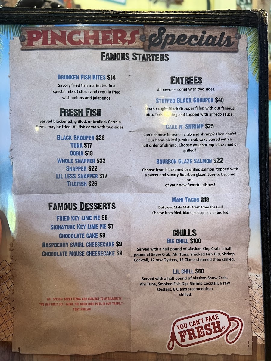 From fun family lunches to relaxed dinners, Pinchers creates an inviting atmosphere reminiscent of Marco Island, making it the perfect spot for seafood lovers. Come indulge in their diverse offerings, where every plate meets the highest standards of taste and presentation!